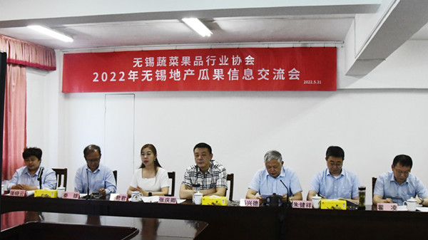 由无锡蔬菜果品行业协会举办的2022年无锡地产瓜果信息交流会于5月31日上午,通过视频会议的形式,在锡澄大厦五楼召开。来自无锡及周边地区各县、区果品生产基地的领导、代表、朝阳集团、朝阳批发市场、天惠超市有关领导共40余人参加了会议。