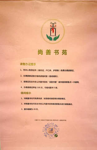 尚善书院自今年9月入驻朝阳文化市场以来,与无锡市阅读办、无锡市文广新局联合成立了“吴韵书香”城市阅读联盟点。该联盟点内藏有各类图书数百册,可供读者免费借阅。读者可在联盟点免费办理读者证,或凭市图书馆的借阅证借阅书籍。所有图书均可在全市各公共图书馆和借阅联盟点进行通借通还。联盟点还会定期举办读书会活动,为爱好读书的人们提供了一个环境清幽的交流场所。