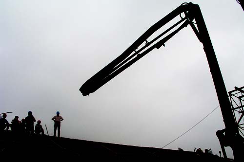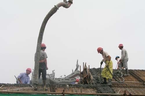 近日,位于繁华的槐古路上的无锡朝阳茶叶市场工地一片繁忙,施工人员正加紧建设。图为新建建筑开始灌注屋顶。