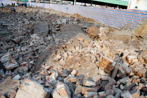 18日下午,无锡朝阳农产品大市场通过定向爆破,成功拆除市场核心地带阻碍交通的大烟囱。