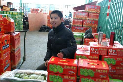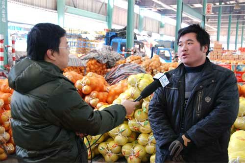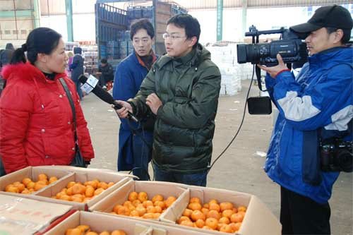 路面稍有冰冻,却没有太多的寒意。市场另一端的水果区,交易渐入高峰,两位电视台记者,算是起了个早,一路采访,收获颇多。做青枣的小伙,看邻座小帅哥巧舌抢镜,煞是不服,要求来张相片上网也好。