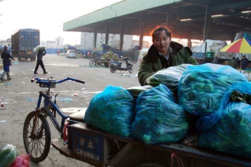 当新年第一缕阳光照耀到人们身上的时候,忙碌在无锡朝阳农产品大市场蔬菜区的客人,即将完成他们清早的劳作。