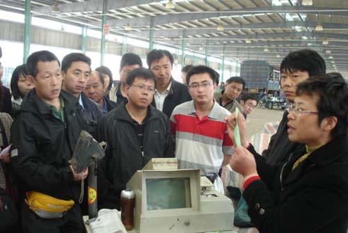无锡朝阳股份公司副总经理樊丽萍为北京客人介绍了大市场的经营、管理和发展情况。