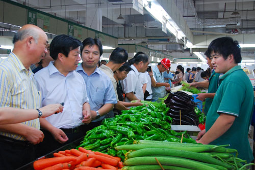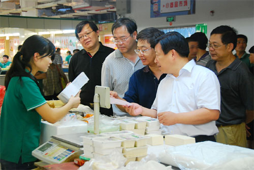 9月17日晚上至18日上午,无锡市副市长方伟率市商务局、工商局等有关部门的领导,专程前往无锡朝阳农产品市场、无锡粮油市场、无锡朝阳农贸市场、无锡天惠超市朝阳店进行节日供应、食品安全工作检查。