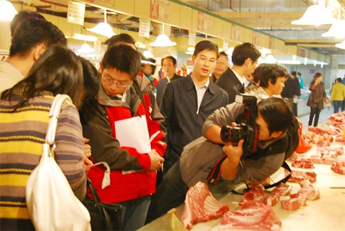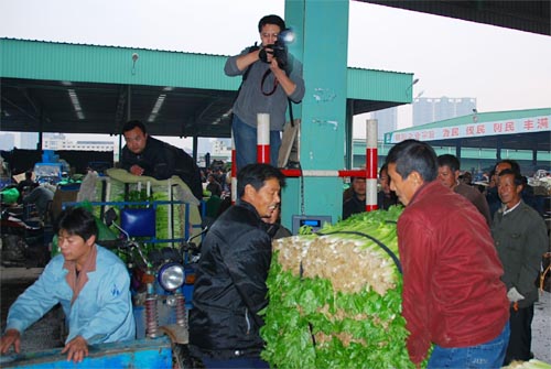 10月28日下午,刚刚开市的无锡朝阳农产品大市场地产蔬菜区聚集了一群特殊的客人。