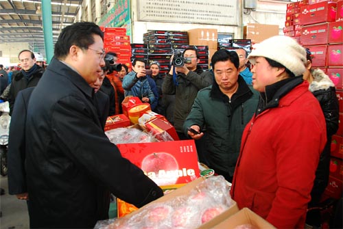 隆冬的江南大地,低温寒风依旧,但明媚的阳光预示着春天脚步的临近。节前的朝阳农产品大市场,也早已是车水马龙、热闹非凡。朝阳集团董事长张海良向杨书记一行介绍了市场为确保节日蔬菜、粮油等与居民生活密切相关的商品供应所做的不懈努力,展示了蔬菜农药残留检测中心、信息中心、交易结算中心的运作模式。杨书记还饶有兴趣地与市场内的经销商户交谈,了解商品来源和销售情况。
