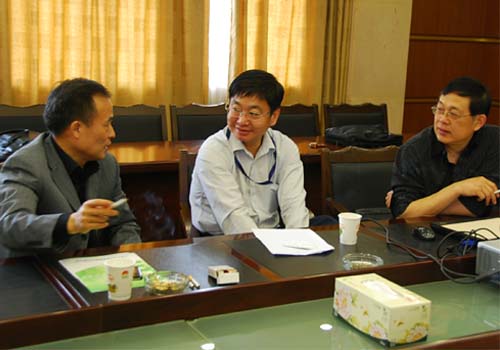 半岛官网平台总经理杨兴德、常务副总经理张君君向客人们介绍了朝阳集团在实施本项目中的方案和进度安排。两市商务局领导还交流了各自在实施肉菜追溯体系建设中的成功经验。