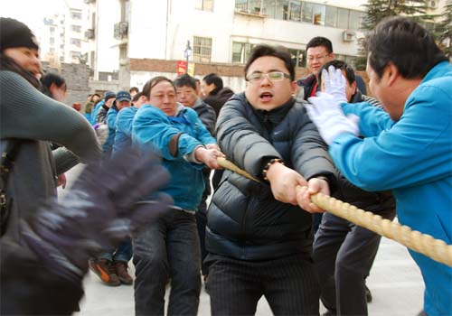 今年的闹元宵活动分别由拔河、自行车慢骑、扑克、象棋比赛、综合游艺、卡拉OK等项目组成,综合游艺活动包括画龙点睛、点鞭炮、投篮、飞镖、射气球、敲铜锣等大家喜闻乐见的小游戏。古运河畔人声鼎沸,处处洋溢着喜庆。经过激烈争夺,朝阳股份公司获得了拔河比赛的第一名,储运公司获得第二。陈伟(储运)、李红江(天惠)、刘守红(天惠)、王凤英(朝阳)分获自行车慢骑男、女组比赛前二名。此外,扑克比赛的第一、第二名被储运公司包揽,分别是朱亚平/周晓与陆纯连/李建国。象棋比赛的第一、二名则分别由夏洪健(朝阳)、邓惠庆(天天厂)获得。