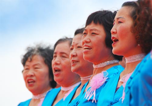 一首首耳熟能详的嘹亮红歌在运河畔回响,一段段姿态优美的舞蹈让观众忘却了炎热,台上台下互动频繁,大家以这种方式,共同庆祝党的92岁生日。