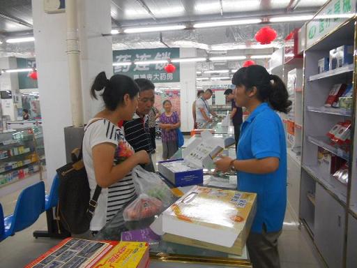 走进药房大堂,琳琅满目的各式药品归类摆放得整整齐齐,宽敞明亮的店铺环境,热情周到的营业人员,平价亲民的日常用药,医保联网刷卡买药,这些都让来朝阳市场购物的消费者们眼前一亮,也为他们提供了一个买药的理想去处。而除了中药和西药之外,医疗器械、保健品、生活用品、化妆品等在这里也都有销售。在药房入口处,还配备了专业人员为市民免费测量血压、脉搏、血糖,免费用药咨询、寻药问药登记、健康咨询等,更周到的为消费者提供人性化服务。