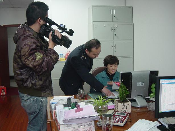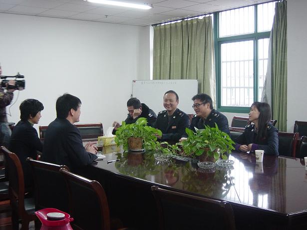 2012年11月23日下午,无锡市国税局四分局缪局长、马科长一行走访天惠超市公司,随行的还有电视台几位同志,超市公司总经理罗志坚、常务副总杨小虹及财务部长陈晓热情接待他们的来访。
