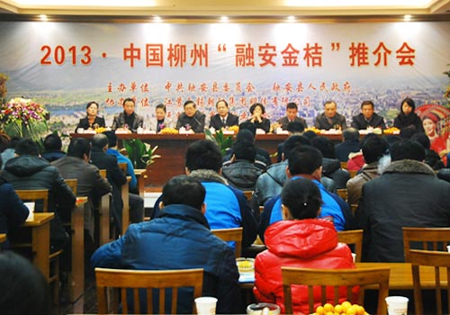 推介会由融安县人大常委会副主任刘维清主持。融安县委副书记韦宁、无锡总商会秘书长韩桂英、朝阳集团总经理杨兴德分别做了讲话发言,对融安金桔进军无锡市场表示热烈祝贺。融安县副县长秦雪梅详细介绍了融安金桔的品质特点。
