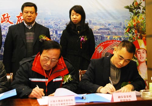 推介会上,来自无锡天惠超市等4家经销商代表分别与融安县金桔专业合作社签订了8000吨金桔购销合同,预计交易金额达4000余万元。