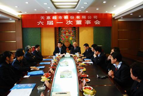 无锡天惠超市股份有限公司2013年3月16日上午8:00在半岛官网平台公司三楼第二会议室召开了天惠超市五届五次董事会,会议由天惠董事长张庆卿主持,会上推荐了新一届董事会、监事会候选人。上午9:00在朝阳集团公司二楼第一会议室召开了天惠超市第十一次股东大会,大会听取和审议了总经理罗志坚先生所作的行政工作报告;听取和审议了财务部长陈晓所作的财务工作报告、利润分配预案和关于增加公司注册资本的议案;听取和审议了监事会主席鲍文梅所作的监事会工作报告;听取和审议了党委书记陈志兰关于修改公司章程的方案,并进行了董事会和监事会成员的换届选举。