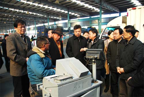 元月21日上午,无锡市副市长嵇克俭一行来到朝阳农产品大市场视察春节供应工作。朝阳集团董事长张海良、总经理杨兴德等向市领导详细介绍了朝阳农产品大市场总体规划和布局,并陪同市领导来到蔬菜备案中心和市场信息中心、结算中心、检测中心及交易现场视察工作。