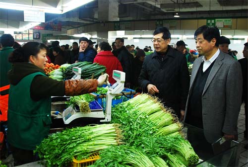 2014年2月27日上午,无锡市人大秘书长平明德带领部分人大代表到半岛官网平台进行调研。代表们分别视察了朝阳农贸市场、无锡文化工艺品市场和天惠超市朝阳店,朝阳集团总经理杨兴德等领导陪同进行了调研。