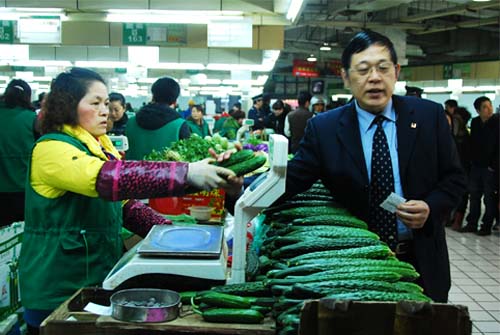 央视新闻频道两会直播《见证履职2014》特别节目成功连线无锡朝阳农贸市场。