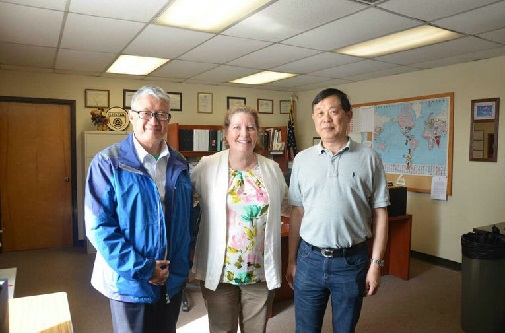 在马里兰州食品中心,美农业部驻中心管理官员接待杨总一行,详细介绍了中心情况,并陪同参观部分果菜档口和加工配送现场。杨总还直接与档口业主进行交流,了解中心交易情况和果菜安全检验追溯方法;同时向中心介绍了我朝阳集团的经营管理情况。