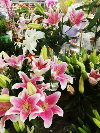 中秋、国庆即将到来,无锡文化工艺品市场花卉区业主熬过了两个多月的酷暑淡季,从9月初就开始为中秋、国庆“双节”准备货源,不仅保证品种丰富,而且价格也比较实惠。节日少不了鲜花,粉百合、白百合5元一支,黄百合7元一支,玫瑰花有3元、5元两种价格,康乃馨25元~30元一束,桔梗花20元一束,其它品种的鲜花也都比较便宜。一些容易种养、彩头好的花卉也较畅销,如红掌、粉掌既可水养,又可土养,每盆价格在15元~45元之间;月季花每盆价格在15元~30元之间;红星凤梨每盆在15元~45元,杜鹃花每盆在20元~50元之间,海棠花价廉物美,每盆在20元左右。各种品种的多肉植物也大量上市,新桩、老桩价格不等,便宜的10元/3盆,普通的每盆10元~20元之间,亲民的价格买的人也比较多,还有进口多肉品种,价格比较昂贵,但仍抵挡不住资深肉迷的追捧。