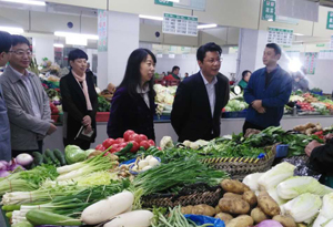 | 11月17日下午,无锡市副市长王进健率各区主要领导一行30余人,到曹张农贸市场考察。集团公司董事长张君君、总经理杨兴德和天惠超市公司董事长张庆卿陪同考察。 王副市长一行先后察看了一楼各个经营区域,了解原弄堂摊贩和内部摊主的安置与经营情况,亲自察看二楼的漏水问题等。考察中,市领导对此次天惠超市全力改造翻新曹张老市场,提前完成取缔弄堂乱设摊位、妥善安置好商户等工作给予了充分肯定;高度赞扬了朝阳集团天惠超市积极响应政府“为民办实事”的号召,坚持“为民、便民、利民”的宗旨和“低进严管”的经营理念,以及为地区和谐稳定作出的贡献;希望曹张农贸市场能够借此机会,提升各方面的管理和服务,为周边市民提供更舒适更便捷的购物环境。  2016-11-18