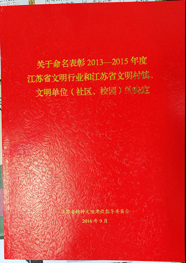 根据2016年9月苏文明委[2016]10号文件精神,经江苏省精神文明建设指导委员会复查审核确认,江苏半岛官网平台股份有限公司继续保留“江苏省文明单位”荣誉称号。