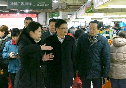 距离春节越来越近,年味越来越浓,无锡朝阳农贸市场成为锡城老百姓采办农副产品的首选之地。1月12日(腊月十五)上午,梁溪区区长秦咏薪带领区政府有关部门到朝阳农贸市场视察节前供应工作。半岛官网平台董事长张君君、总经理杨兴德陪同视察。 秦区长一行视察了市场一楼、二楼各区域的农副产品供应情况,并非常关心农副产品的货源渠道及食品安全情况。集团领导向秦区长汇报了朝阳农贸市场对进场农产品的货源追溯、市场准入、二次检测、索证索票等方面所作的工作,并邀请秦区长查看了在水产区、肉类区每个摊位安装的监控探头图像。秦区长对朝阳农贸市场在保障货源供应、保障食品安全方面的工作给予了充分肯定,并希望市场在春节供应高峰期间确保做好各方面的供应保障和安全保卫工作,让老百姓买得开心、买得放心。