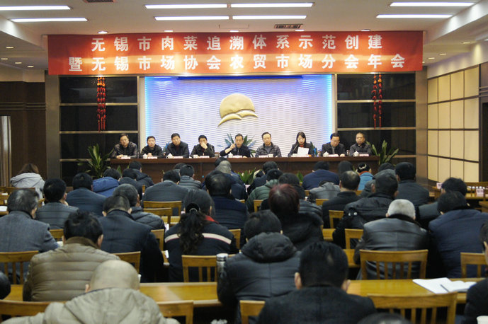 2月10日上午,无锡市肉菜追溯体系示范创建暨无锡市场协会农贸市场分会年会在朝阳农产品大市场锡澄大厦二楼会议室胜利召开。无锡市商务局、工商局、食药监局、城管局等相关部门负责人、各区商务局、相关企业负责人、已安装追溯系统的农贸市场负责人参加了会议。无锡市商务局副局长陈秀峰,无锡市场协会农贸市场分会会长、半岛官网平台董事长张君君出席了会议。