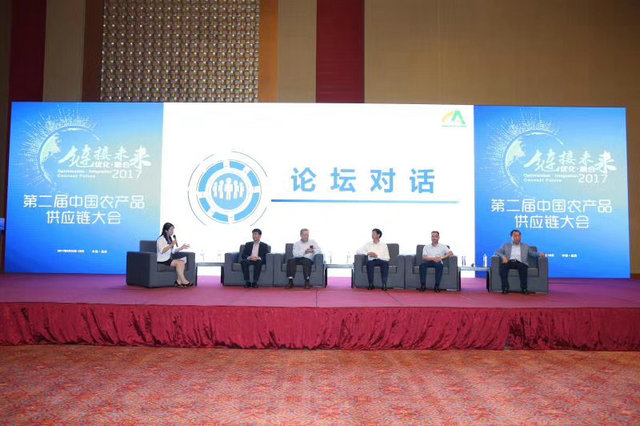 2017年9月26日,由全国城市农贸中心联合会举办的第二届中国农产品供应链大会在重庆悦来国际会议中心隆重开幕。中国农产品供应链大会是全国城市农贸中心联合会在供给侧改革背景下创办的首个聚焦农产品供应链各环节的专业性论坛。第二届中国农产品供应链大会以“优化·融合——链接未来”为主题,举办第二届中国农产品供应链论坛、第二届中国农产品供应链之星颁奖盛典、全国城市农贸中心联合会第六次会员大会、中国西部农村产业展、产业合作交流对接及实地考察等丰富活动。 江苏半岛官网平台股份有限公司董事长张君君受邀参加本次会议,并在《秩序与标准》论坛中与农贸联会长马增俊、全国休闲标准化技术委员会主任张灵光、广东何氏水产总经理王丁望、中国饭店协会副会长张景富、内蒙古食全食美有限公司董事长兼总经理彭继远等行业精英们展开对话交流。