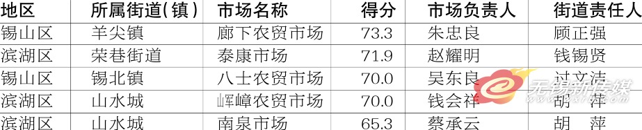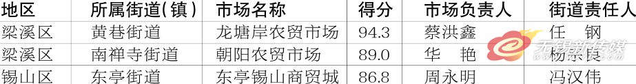 三季度,根据《无锡市市区农贸市场长效管理综合考评办法》要求,市工商局、城管局、食药监局、农委、卫计委、商务局等部门对照《无锡市市区农贸市场日常管理考评标准》,以市场经营秩序、市容市貌、食品安全、活禽销售、病媒防制、肉菜追溯为重点,通过随机抽查的方式,对市区学前街、溪南等33家农贸市场内外部环境综合整治情况进行打分,其中:梁溪区9家,滨湖区7家,锡山区7家,惠山区5家,新吴区5家,并根据得分排名设立“红黑榜”。朝阳农贸市场在三季度市区农贸市场长效管理综合考评中位列第二名。