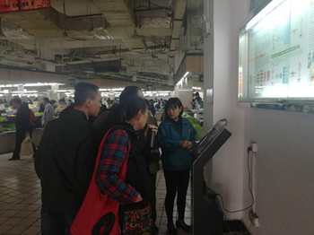 昨天下午,安徽合肥市包河区商务局马科长一行10人来朝阳农贸市场参观交流,市场经理室热情接待了客人们,为大家详细地介绍了制度化管理和智慧农贸市场的运营管理方面的具体工作,现场演示了智能电子秤的操作流程。