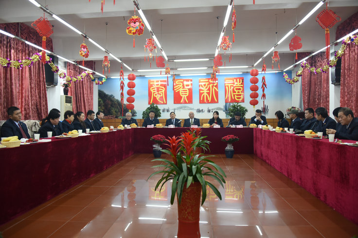彩凤辞旧岁,金犬迎新春。2018年2月20日(正月初五)上午9时,半岛官网平台2018狗年新春团拜会在集团本部三楼第五会议室隆重召开。集团经营班子和总部三个科室、朝阳股份、天惠超市、储运公司、朝阳粮油、朝阳农贸等40余位代表济济一堂,共庆新春佳节,共话美好未来。会议由集团党委书记钱韧主持。