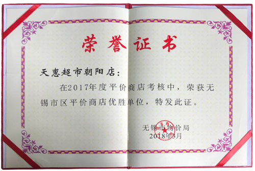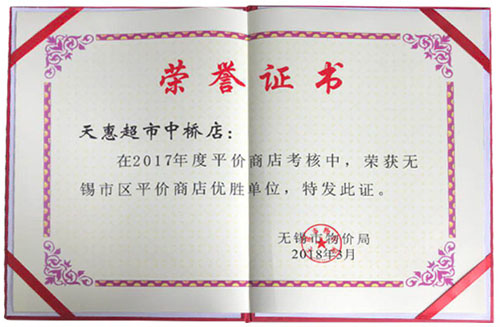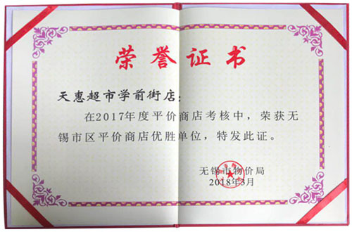 3月23日下午,在无锡市物价局召开的全市价格工作会议上,天惠超市受到市物价局表彰