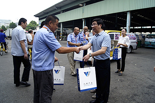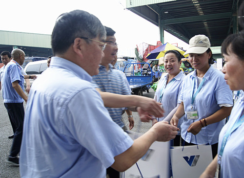 下午二点多的朝阳农产品大市场内,商品整齐丰满,车辆川流不息。产业集团领导先后来到大厦检票门、水果五通道、中央大道、水果五号门、蔬菜五号门、北滨路一号门等地方,亲切慰问了正在岗位上挥汗如雨、辛勤工作的安保人员、司磅员等,为他们送上高温慰问品,带去产业集团领导对他们的深切关怀。市场员工在感谢和感动之余,纷纷表示,将继续发扬不怕苦不怕累的精神,坚守岗位,做好自己的本职工作。