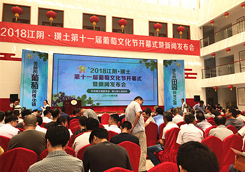 7月28日,朝阳股份水果市场应邀参加了“2018江阴·璜土第十一届葡萄文化节开幕式暨新闻发布会”。此次活动由中共江阴璜土镇委员会和江阴璜土镇政府主办,无锡市、江阴市及辖属镇、村相关部门领导、葡萄种植户代表、批发市场经销代表、电商代表及各大媒体记者出席了会议。