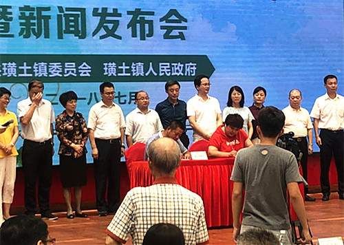 在开幕式宣传短片中,隆重介绍了璜土葡萄的产业发展现状,以及璜土葡萄在朝阳股份水果市场的销售场景,当地领导围绕大力发展璜土葡萄作了致辞。在随后进行的合作单位签约仪式上,朝阳股份水果市场副经理张晓云代表市场,与江阴故乡情果业专业合作社的3名葡萄种植大户签署了44万斤、总产值近300万元的葡萄购销协议。