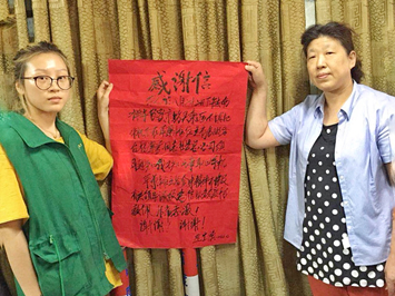 今天上午,一位老年顾客颤颤巍巍地来到服务台,一边向工作人员递上大红色的感谢信,一边会说起了事情的原委: 8月22日下午,老年顾客在苹果摊位前丢失了一只手机,摊主捡到后立刻交到服务台,服务台杨翠芬通过微信朋友圈的相关信息辗转联系到了失主。失主当得知手机失而复得的时候,激动的连声说“太好了,谢谢、谢谢”。并赞扬了朝阳农贸市场经营户拾金不昧的精神,感谢朝阳农贸市场优质的服务,这也充分体现了朝阳农贸市场为民、利民、便民的服务宗旨。