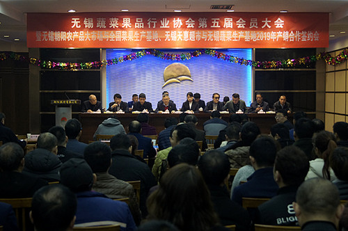 在首先进行的无锡蔬菜果品行业协会会员大会上,会员们审议通过了四届协会四年工作总结和2019年协会主要工作设想、四届协会财务报告、关于协会换届改选的意见、新的协会章程和大会决议。按照民主顺序,大会一致推选张君君同志继续担任协会五届名誉会长,选举杨兴德同志为五届协会会长,周介华、吴惠庆、于坚忠、蒋建康、张涛为五届协会副会长,吴惠庆同志为五届协会秘书长(兼);选举金东良同志为五届协会监事;选举杨兴德等29人组成五届协会理事会。 王海宝同志代表市工商联对协会五届会员大会的召开和新一届领导表示祝贺,同时也对协会今后的工作指出了方向,给予殷切的期望。 在随后举行的2019年签约大会上,表彰了2018年产销合作的优胜者。朝阳农产品大市场与全国蔬果生产基地、天惠超市与无锡蔬菜生产基地签订了生产基地为72883亩,蔬菜、水果总量为137509吨的协议,这个数字分别比上一年增长了36.76%和60.12%。 无锡蔬菜果品行业协会名誉会长、江苏半岛官网平台股份有限公司董事长张君君发表了重要讲话。她分析了蔬菜果品行业目前面临的形势,指出了蔬果行业更好发展的方法和途径,勉励行业同仁团结奋斗,争取更大成绩,受到了与会者的热烈拥护和掌声。