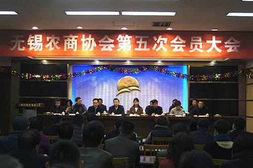12月26日上午,无锡农商协会第五次会员大会在朝阳农产品大市场召开。无锡农商协会近100名会员出席了大会,市工商联副主席俞波、市民政局副调研员刘长风、市邮政局副局长王贵祥、市农委水产指导站站长、高级推广研究员张宪中、市农委综合处处长孙学军、市农委信息中心主任姚静等领导出席会议。