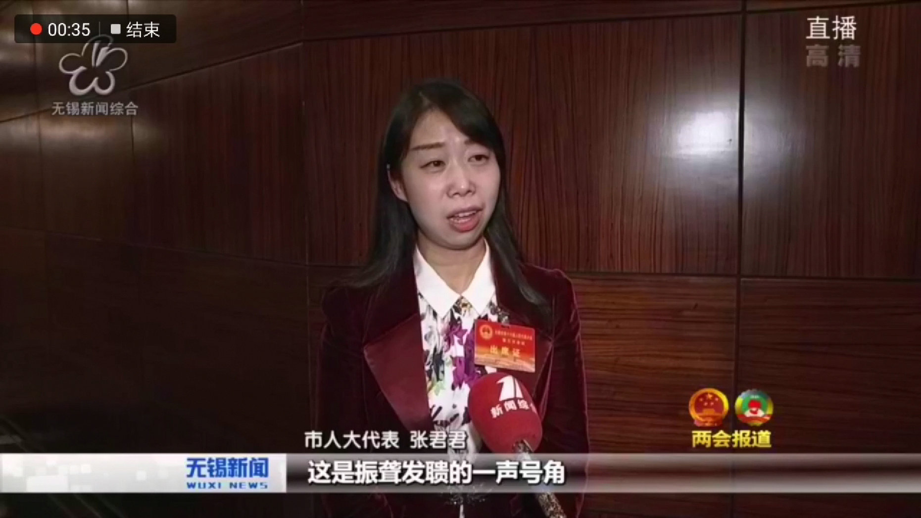 昨天是无锡市十六届三次人代会召开的第一天,市人大代表、朝阳集团董事长张君君在会议期间,分别接受了《无锡新闻》、《今晚60分》等电视台栏目记者的采访,热议李小敏书记讲话和《政府工作报告》。