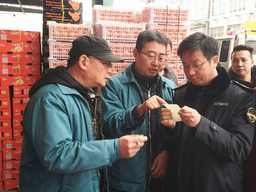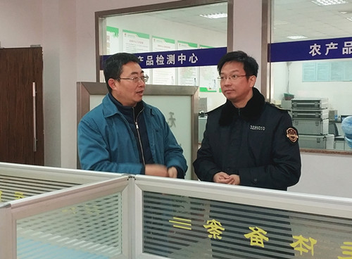 春节来临前夕,1月29日,无锡市市场监督管理局胡副局长率梁溪区市管局、黄巷分局等有关同志到朝阳农产品大市场检查工作。朝阳股份总经理朱健祥热情接待了来访领导。