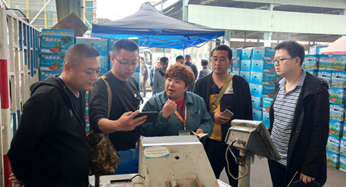 4月19日上午,由西宁农商投资建设开发管理有限公司投资的,青海省西宁市青藏高原农副产品集散中心副总经理韦赟,率业务部、信息部、财务部等一行7人到无锡朝阳农产品大市场参观考察。朝阳农产品大市场水果市场经理张晓云等热情接待了来访客人。