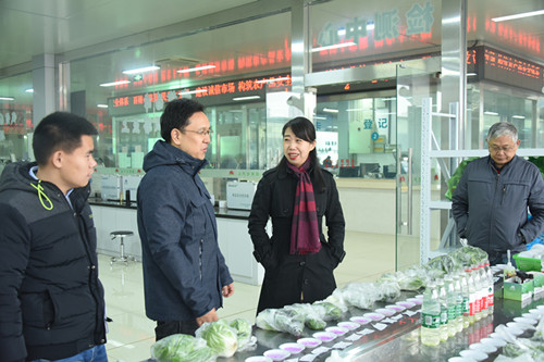 在张董、杨总的陪同下,来访领导一行先后考察了信息中心、检测中心、结算中心、蔬菜、水果两大市场、冷库、北二库、粮油市场等。张董详细介绍了市场的经营运作与建设发展情况,尤其是在电子化交易结算、大数据平台建设等方面所作的探索与实践。
