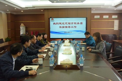 415日上午,无锡市税务局财产和行为科张晓阳科长、王晓东副科长率队走访调研朝阳集团。集团董事长张君君热情接待了无锡市税务局代表一行。