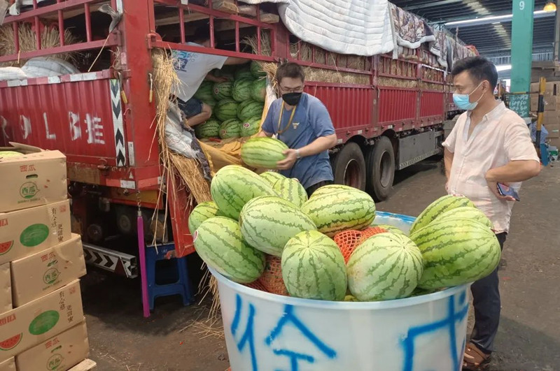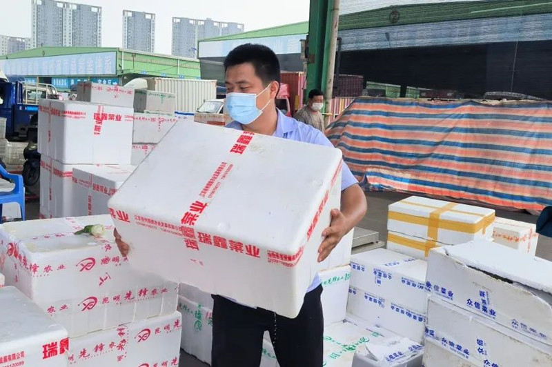 此外,市场发挥场地优势,采取冷库保鲜及现场销售的混合模式,以目前每日蔬果供应量的两倍进行动态存量储存,随时应对广大市民的“菜篮子”供应需求,此举快速稳定地平抑了市场价格。蔬菜方面,均价稳定在1.7元/斤,与往年同期相比也属于中低价位,主力品种价格稳定,其中土豆、甘蓝包菜、生菜均价分别保持在1.1元/斤、1.2元/斤和1.9元/斤左右;水果方面,西瓜、葡萄、水蜜桃等夏季时令水果均价分别保持在2元/斤、8元/斤和7元/斤左右。总体来说,蔬果价格并未因疫情影响而大幅波动,朝阳农产品大市场不折不扣地完成了“菜篮子”工程的两大核心任务:保证供应量,稳定市场价格。 为保证市内外会员正常拿货,市场还特别推行了“代采购 代配送”服务,即会员与客商达成交易后,由市场员工牵头,负责安排车辆运送至目的地,此举不仅成功联通了市场、供应商与会员,成功探索了一条保供“新链条”,更确保疫情时期商品能够正常流入终端市场,真正形成安全、有序、共赢的“疫时供应新局面”。