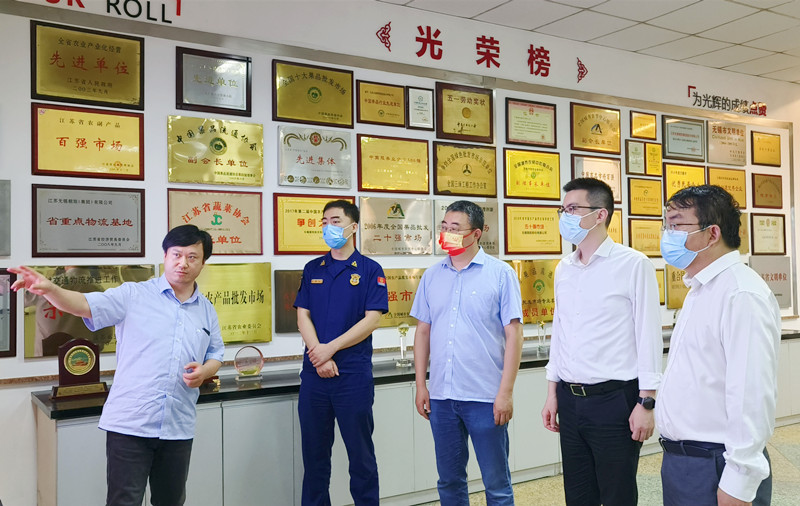 10月1日上午,梁溪区副区长辛乐带领区商务局相关负责人、区城管、应急局、卫生健康委、市监、公安、消防救援大队等部门分管负责人到朝阳农产品大市场开展疫情防控、安全生产和节日保供检查。朝阳股份总经理朱健祥热情接待了检查组领导。