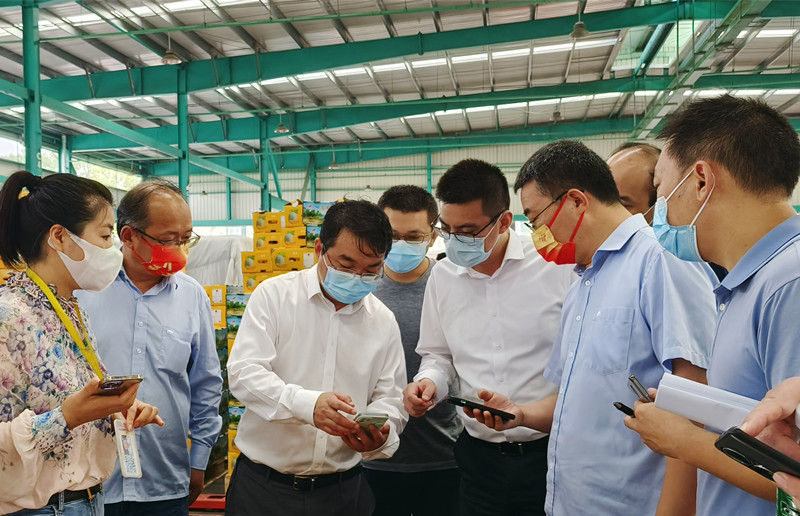 检查组一行首先来到陈列馆,全面了解市场通过信息化大数据平台,开展科学防疫、实行人、车、货全程溯源,严格中高风险地区来货车辆管控的具体举措。随后检查组又来到检测中心、结算中心、蔬菜、水果两大市场、冷库及粮油市场,现场随机抽检了几名商户的核酸检测情况,查看了从业人员数字身份在市场防疫中的应用。