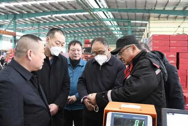 考察团一行先后参观了朝阳陈列馆、信息中心、检测中心、结算中心、蔬菜、水果两大市场、万吨冷库及粮油市场。秦顾问向考察团详细介绍了朝阳农产品大市场的经营管理模式、电子化交易结算、溯源体系建设、食品安全检测、农产品供应链等方面情况,得到了魏县长的充分认可与高度赞誉。