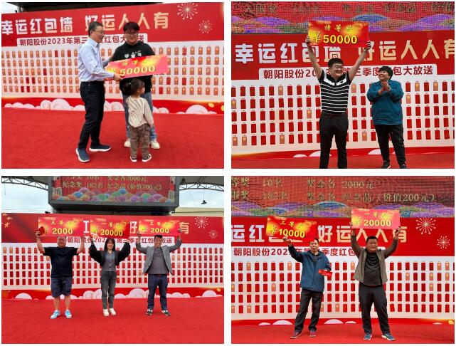 在活动现场,广大会员、客商、员工见证参与本次抽奖活动,共同分享中奖者的喜悦与幸福!经过热烈纷呈的抽奖环节,最终产生了一批幸运的大奖会员,他们收获了丰厚的现金红包,也让他们对朝阳股份更充满信心。
