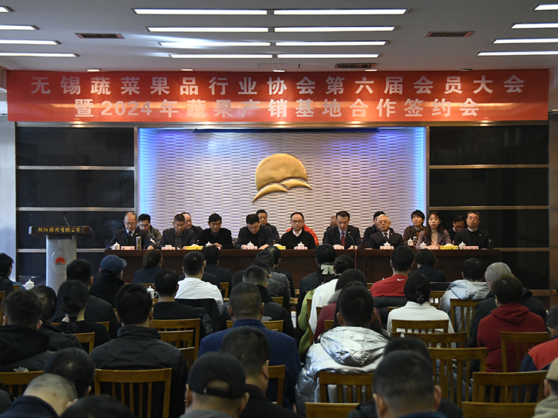 11月18日上午,无锡蔬菜果品行业协会第六届会员大会暨2024年蔬果产销基地合作签约会在朝阳农产品大市场召开。无锡蔬菜果品行业协会会员、全国及无锡蔬果生产基地代表、蔬果行业各单位、各部门有关人员共170余人出席会议。无锡市工商联副主席蒋谊春、无锡市工商联行业处处长梅志陶等领导出席会议。无锡日报、江南晚报、无锡广播电视台等主流媒体记者到会采访。