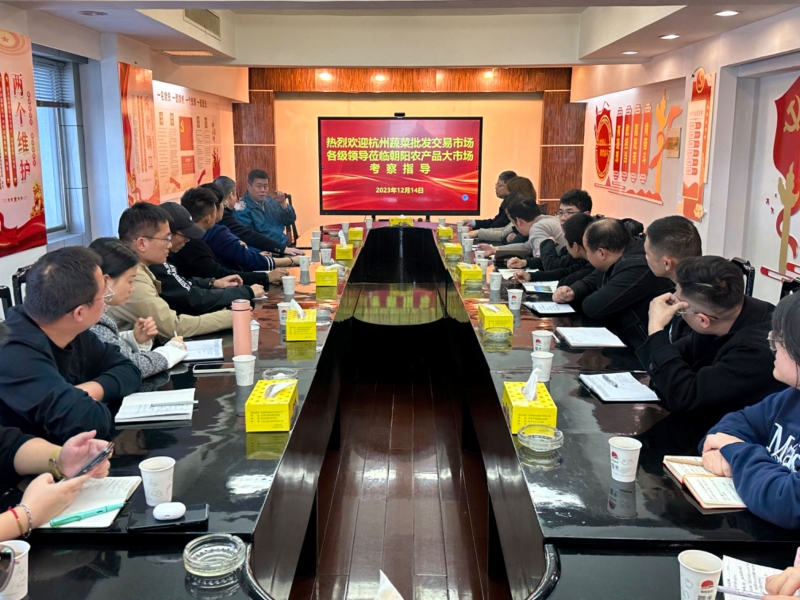 12月14日,杭州蔬菜批发市场总经理韩大雄、副总经理姜艳惠、何根源一行24人莅临朝阳农产品大市场参观考察,朝阳股份工会主席尤勇热情接待了来访客人。  来访客人先后参观考察了朝阳陈列馆、信息中心、检测中心、结算中心、蔬菜、水果两大市场、冷库及粮油市场。尤主席向客人详细介绍了市场的经营管理模式、近几年的建设发展情况以及在电子化交易结算、溯源体系建设、食品安全检测等方面所做的工作。来访人员对大市场的经营模式与发展前景给予了高度的赞许。  参观结束后,双方进行座谈交流,韩总热情邀请大市场领导到杭蔬市场参观考察,并希望今后加强交流合作,互相学习,共同发展。 (供稿:张柯宇) |